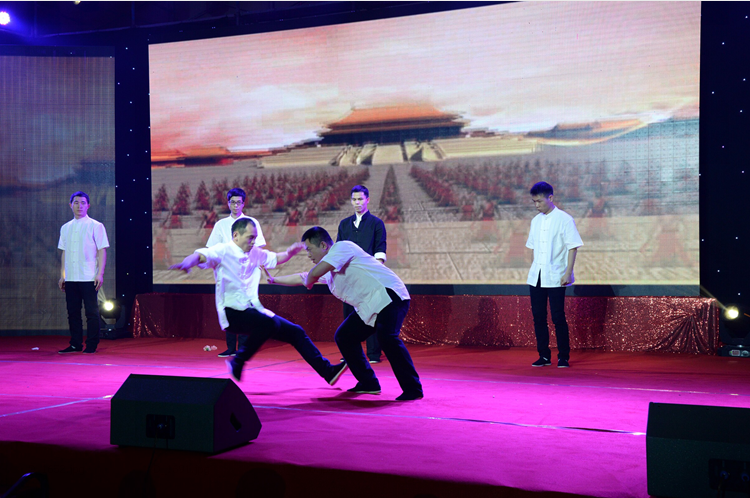 為了給天信二十周年生日獻禮,天信儀表集團文藝隊成員給各位嘉賓和員工們準備了一臺堪稱專業級的文藝晚會,12個內容豐富、形式新穎的精彩節目,竟全是員工們利用業余時間精心編排和創作的。在所有人的期待中,一曲震憾人心的鼓舞敲響了本場晚會的第一音符,激情四射、強勁有力的鼓舞,一開場便博得了滿堂彩,給觀眾留下了深刻而難忘的印象。抒情高亢的獨唱、合唱表演,將觀眾帶進了另一個如癡如醉的美好世界,給人耳目一新的視聽震撼。婀娜歡快的印度舞蹈讓臺下觀眾驚訝不已,原創小品《天信新聞播報》令觀眾開懷大笑。聲情并茂的詩朗誦、清新深情的吉他彈唱、剛勁有力的武術表演、優雅性感的旗袍走秀、員工子女才藝表演,每一個節目都深深地感染著現場的每一個人,整臺文藝晚會節奏明快、環節緊扣、場上場下互動熱烈、嘉賓情緒高漲,雄渾高亢的歌聲、細膩柔美的舞蹈、繽紛亮麗的燈光、激情澎湃的畫面,感染著每一位身臨其中的人。員工們紛紛掏出手機,記錄下這精彩的片刻。