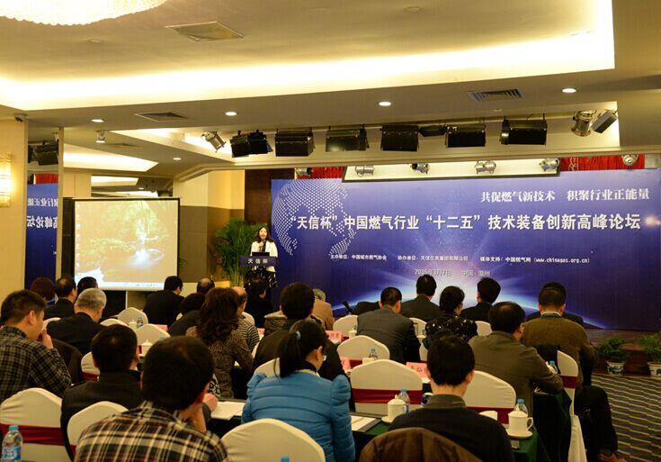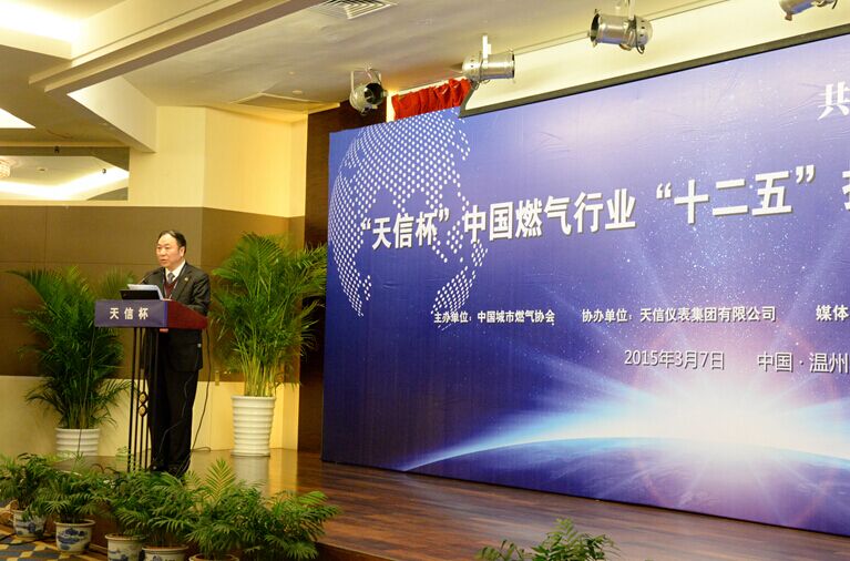 由中國城市燃?xì)鈪f(xié)會(huì)主辦、天信儀表集團(tuán)有限公司協(xié)辦的“天信杯”中國燃?xì)庑袠I(yè)“十二五”技術(shù)裝備創(chuàng)新高峰論壇和有獎(jiǎng)?wù)魑幕顒?dòng)發(fā)布會(huì),于2015年3月7日在溫州瑤溪大酒店隆重舉行。中國城市燃?xì)鈪f(xié)會(huì)理事長王天錫、秘書長遲國敬,中國儀器儀表行業(yè)協(xié)會(huì)專職副理事長李躍光,浙江燃?xì)鈺?huì)秘書長王莉莉,天信儀表集團(tuán)總裁范叔沙,以及來自業(yè)界的專家和領(lǐng)導(dǎo)100多人出席論壇。